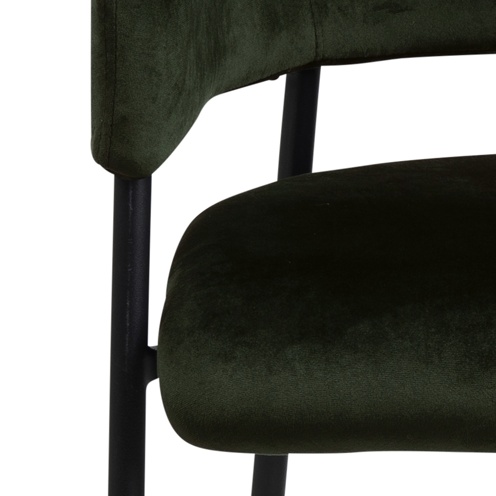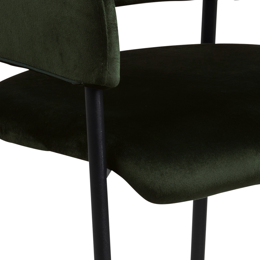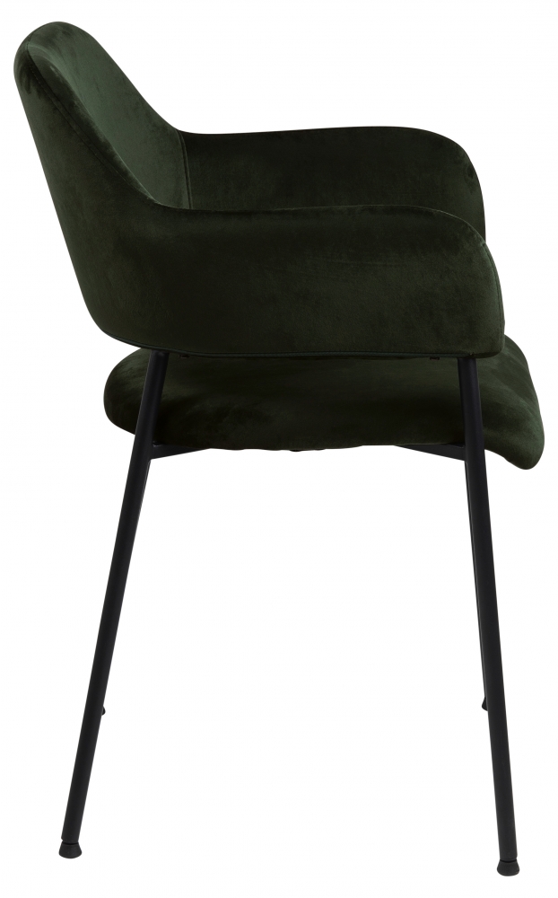 Dizajnová stolička Lima v zelenom prevedení je vyrobená zo zamatu a čierne podnože. Je výbornou voľbou do moderných kuchýň, zasadacích miestností, aj ako stolička do študentskej izby či domácej pracovne. Čistý dizajn tejto stoličky si zamilujú najmä obdivovatelia minimalizmu a jednoduchej pôsobivosti. Výhodou tejto stoličky sú pohodlné lakťové opierky a možnosť stohovateľnosti.